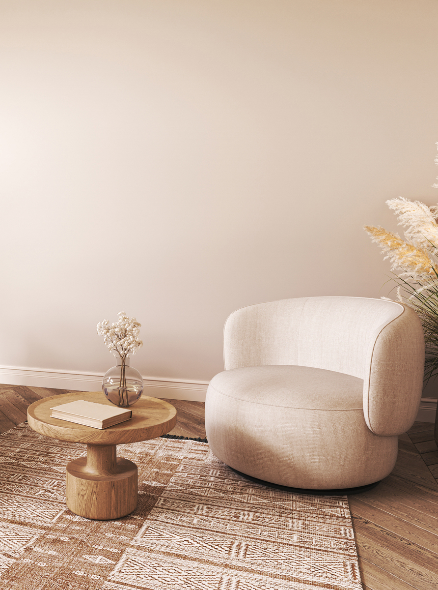 环境精致优雅简单电商背景室内家居场景简约风米色沙发白色花瓶干花