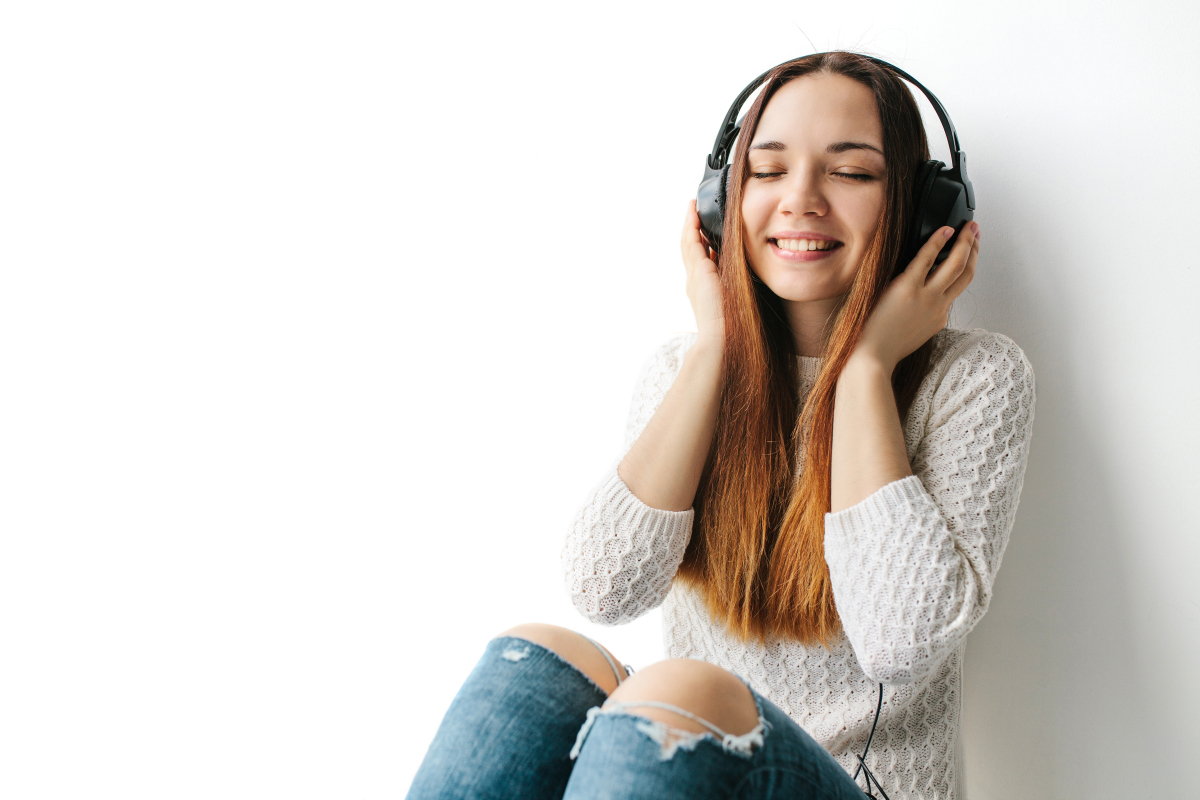 4k升格慢动作甜美女孩开心听音乐实拍视频素材视频特效素材-千库网